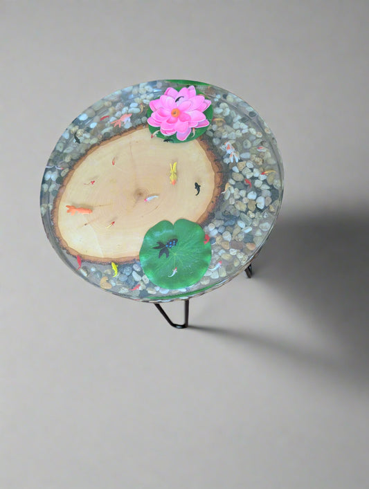 3D Resin Pond End Table - 14x2 Inch Mesmerizing Water Effect Side Table
