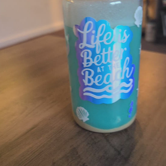 "Drink in the beach vibes with this quirky and fun Snow Globe Beach Themed Cup! Featuring real sand and seashells, every sip will transport you to a sandy paradise. Perfect for a day at the beach or just to add some fun to your drinkware collection. Cheers to good vibes!"
